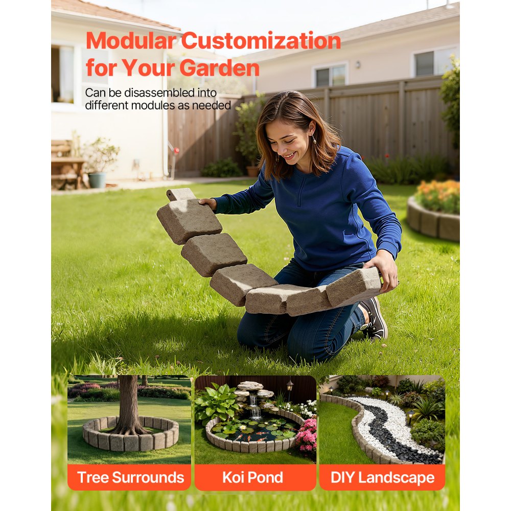 Diseño de paisaje versátil: Ideales para cualquier diseño de exteriores, estos bordes de adoquines ofrecen una aplicación flexible. Son ideales para crear elegantes límites de jardín, separar césped y senderos o mejorar la seguridad alrededor de piscinas. El diseño modular permite líneas rectas uniformes o curvas creativas, lo que le permite hacer realidad su visión del paisaje