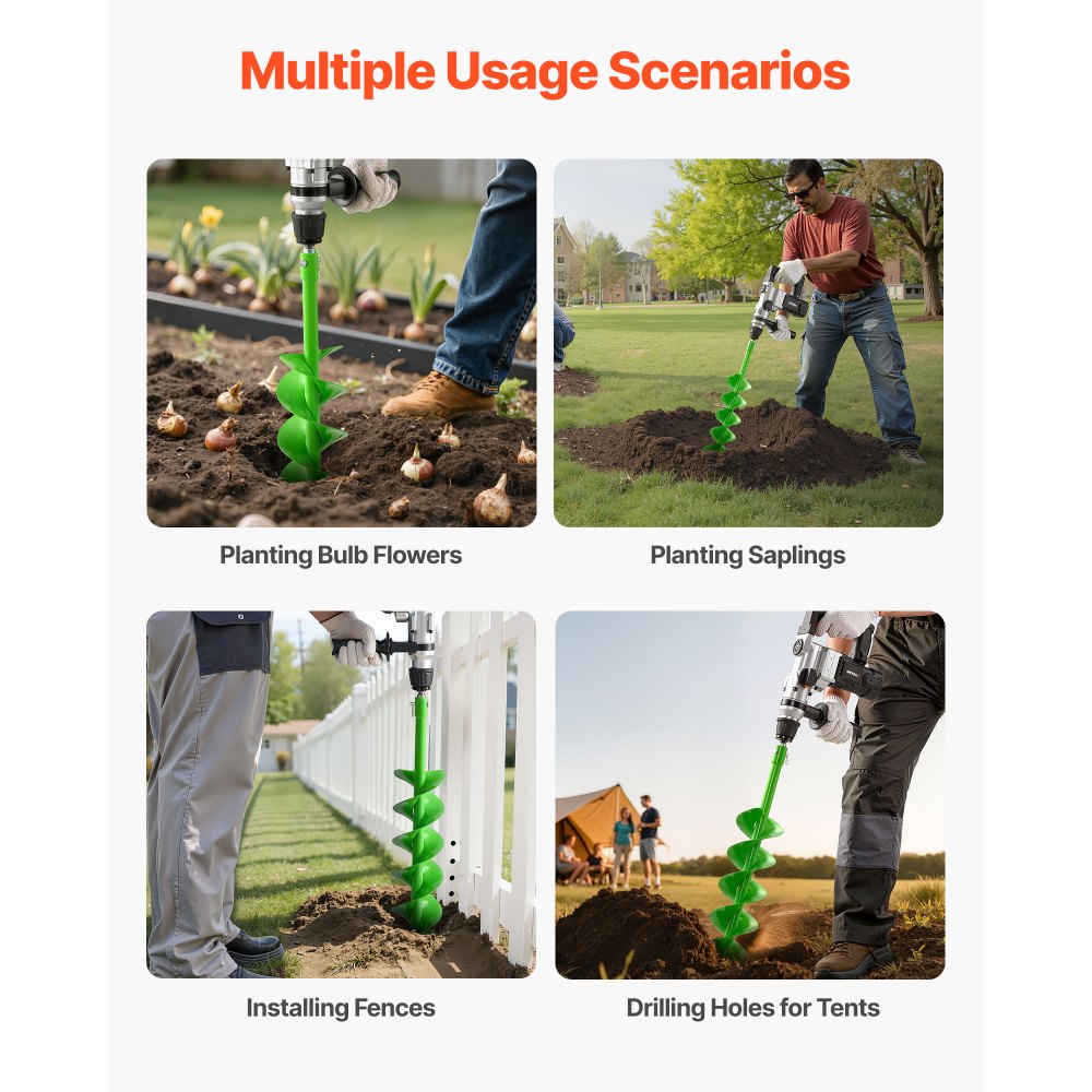 Herramienta de jardinería multiusos: Más que solo para bulbos, flores y verduras, la broca barrena para plantar también es ideal para perforar agujeros para postes de cercas, carpas o decoraciones de exterior. Imprescindible para jardinería, paisajismo y proyectos de bricolaje