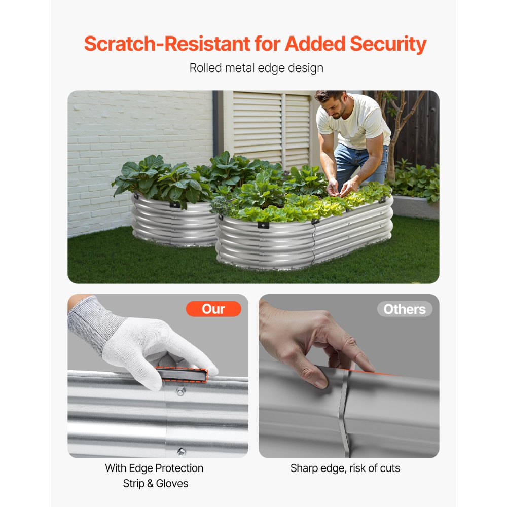 Uso seguro: Para garantizar su seguridad durante el uso, nuestra jardinera elevada cuenta con bordes redondeados con protectores de bordes e incluye un par de guantes para proteger sus manos de rayones. Disfrute de una jardinería sin preocupaciones con este diseño bien pensado