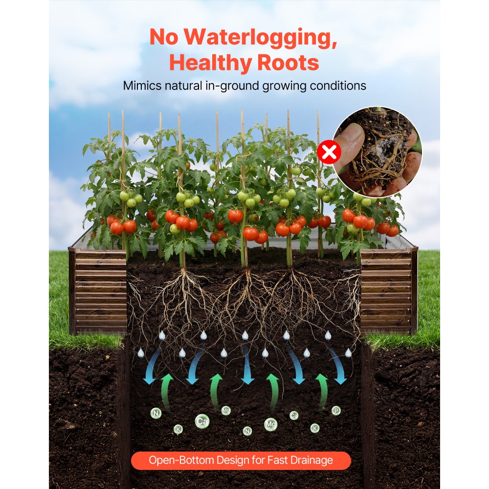 Diseño sin fondo, drenaje rápido: Este bancal elevado cuenta con un diseño de fondo abierto que permite drenar rápidamente el exceso de agua. Favorece el crecimiento saludable de las raíces y la absorción de nutrientes, y reduce las preocupaciones de mantenimiento, incluso durante lluvias intensas o riego excesivo
