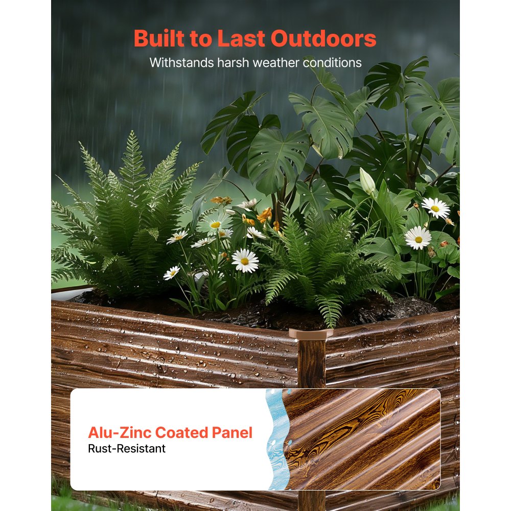 Resistente a la oxidación y duradera: Fabricado con un resistente panel recubierto de aluminio y zinc, este huerto elevado para exteriores resiste la oxidación, la corrosión y la deformación. Diseñado para un uso prolongado en exteriores, mantiene su resistencia y forma temporada tras temporada en tu jardín