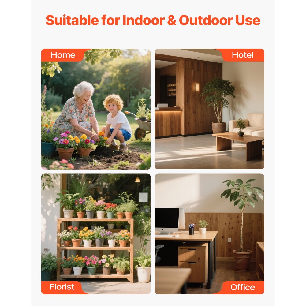 Operación por una sola persona: El transportador de plantas en macetas cuenta con brazos de garra ajustables (rango: 500 mm) y se adapta a alturas de macetas de 250 a 750 mm con aberturas de hasta 35 cm, lo que le permite mover la mayoría de las plantas en macetas en casa con facilidad