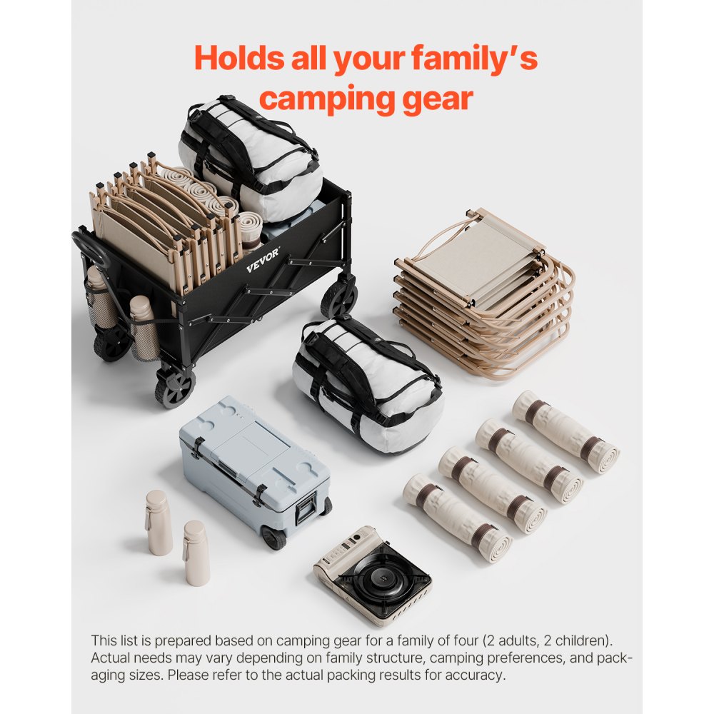 Ruedas todoterreno: Este carrito plegable está equipado con ruedas de PVC de 5 x 1,5 pulgadas, lo que permite un fácil movimiento en diversas superficies, incluida la arena, el césped y las calles pavimentadas. Ya sea que lo use para aventuras al aire libre, para ir de compras o para transportar suministros de jardinería, puede satisfacer sus necesidades