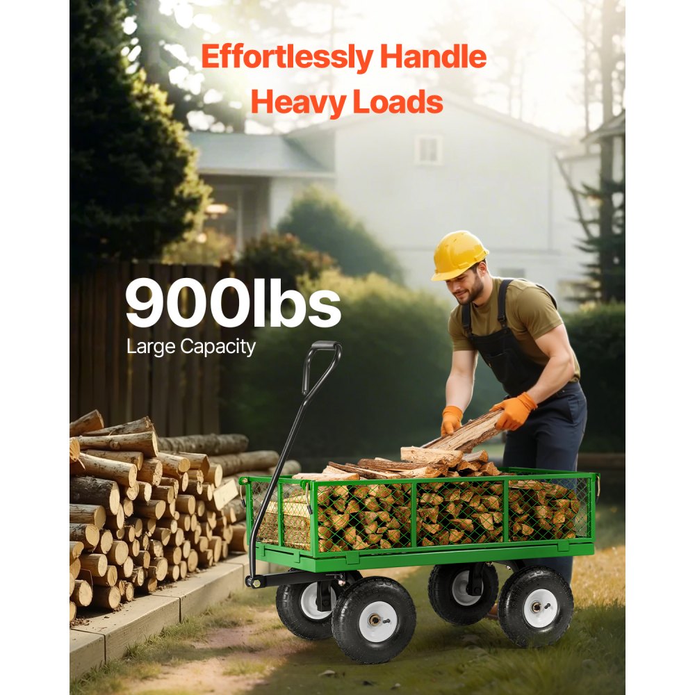 Capacidad de carga de 900 lb: Este carrito de jardín está especialmente diseñado para transportar objetos pesados con facilidad. Ya sea que esté moviendo tierra, piedras o herramientas pesadas, su capacidad de 900 lb le permite llevar todo en un solo viaje, lo que reduce el esfuerzo de ida y vuelta y hace que sus tareas sean más eficientes y sin complicaciones