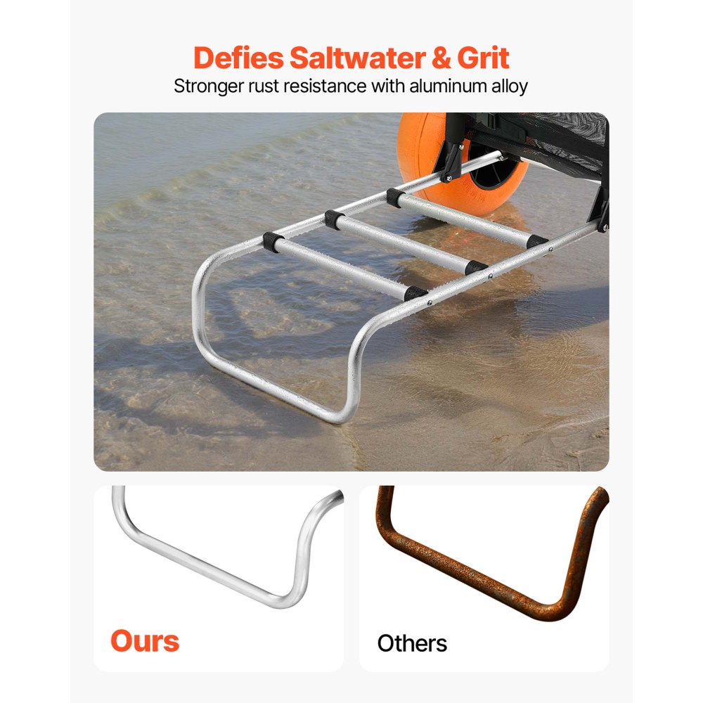 Aluminio resistente al óxido: Nuestro carrito de playa está fabricado con material de aluminio resistente con mayor resistencia al óxido, capaz de resistir el sol, la lluvia y la erosión de la arena, la grava y el agua de mar en la playa. El espesor reforzado del tubo de aluminio asegura que permanezca fuerte y resistente a la deformación, asegurando una durabilidad a largo plazo.