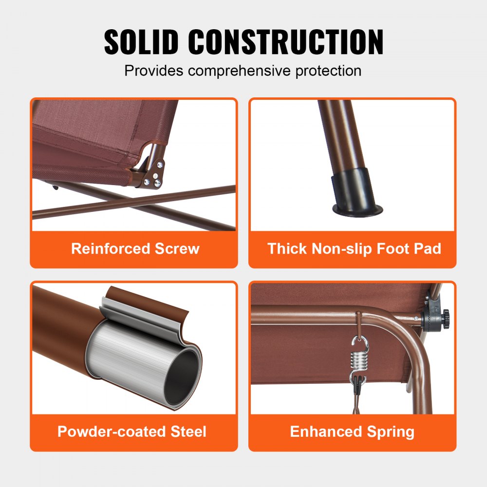 Tela para exteriores: El columpio de patio con dosel VEVOR cuenta con un asiento y respaldo espaciosos, ambos hechos de tela Oxford para exteriores, lo que garantiza una experiencia fresca y transpirable incluso en verano. El diseño curvo del asiento y el respaldo se adapta a su columna para sentarse cómodamente.