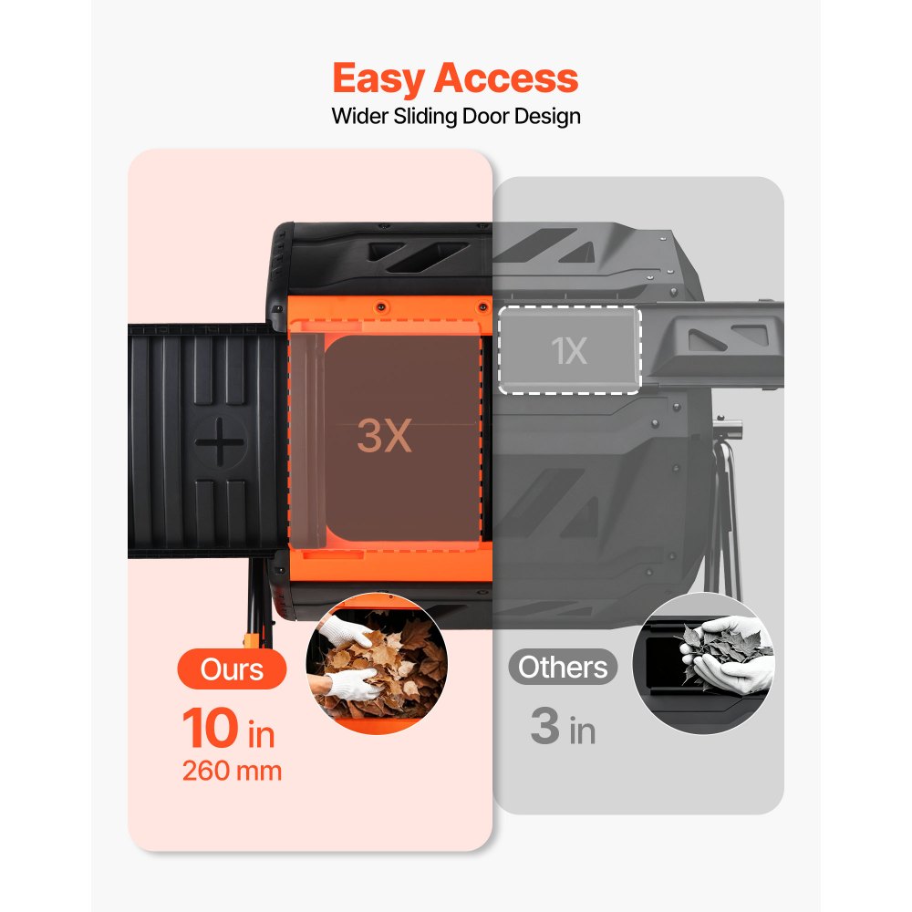Diseño práctico: La amplia puerta corrediza del compostador giratorio para exteriores permite cargar y descargar sin esfuerzo. Su base elevada mantiene alejados a los bichos indeseados y ayuda a mantener un jardín limpio y fresco