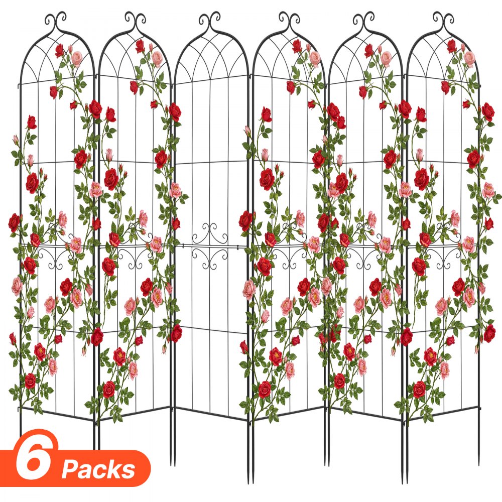 Soporte estable: Este juego de enrejados metálicos para jardín incluye 6 paneles de 220 x 52,5 cm y estacas de 29 cm. Se ancla firmemente en la tierra, el césped o el suelo húmedo sin volcarse, proporcionando un soporte resistente para las plantas trepadoras