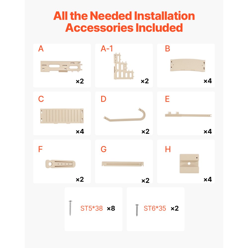 Juego completo de accesorios: En el momento de la entrega, puede ensamblar rápidamente la escalera. Nuestras placas de sujeción vienen con orificios pretaladrados, por lo que solo necesita medir y perforar para una fácil instalación. Los pisos de concreto y baldosas deben comprar sus propios pernos de expansión para la instalación