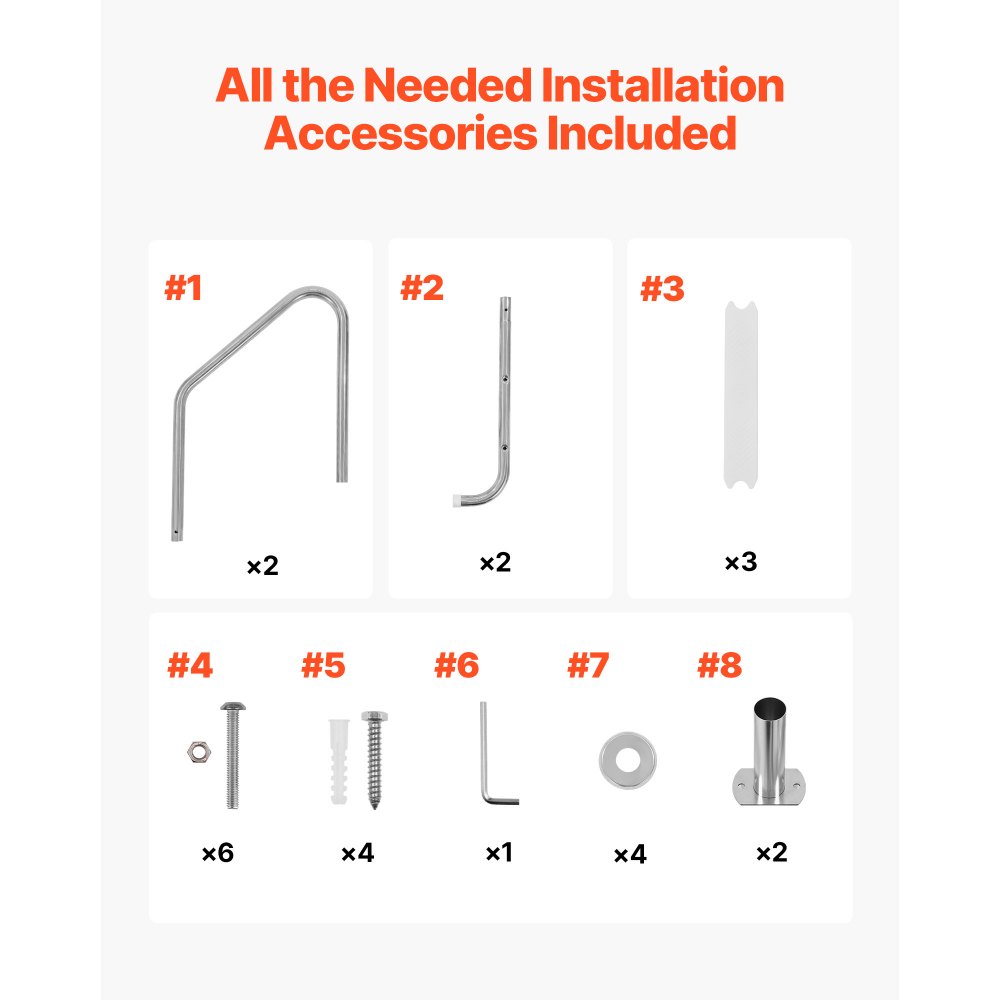 Estructura de acero inoxidable de primera calidad: Fabricada con acero inoxidable 304 resistente, esta escalera para piscina resiste el impacto del agua y el desgaste diario. La superficie anodizada ayuda a soportar la exposición al sol, mientras que la soldadura precisa garantiza una estabilidad duradera para piscinas interiores y exteriores