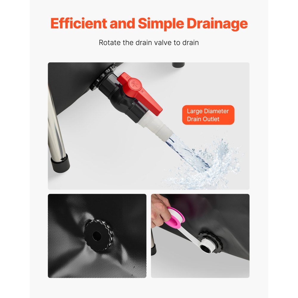 Drenaje rápido: Con una válvula de drenaje grande, este estanque de peces permite una rápida liberación de agua con un simple giro, ahorrando tiempo y haciendo que el mantenimiento sea más conveniente