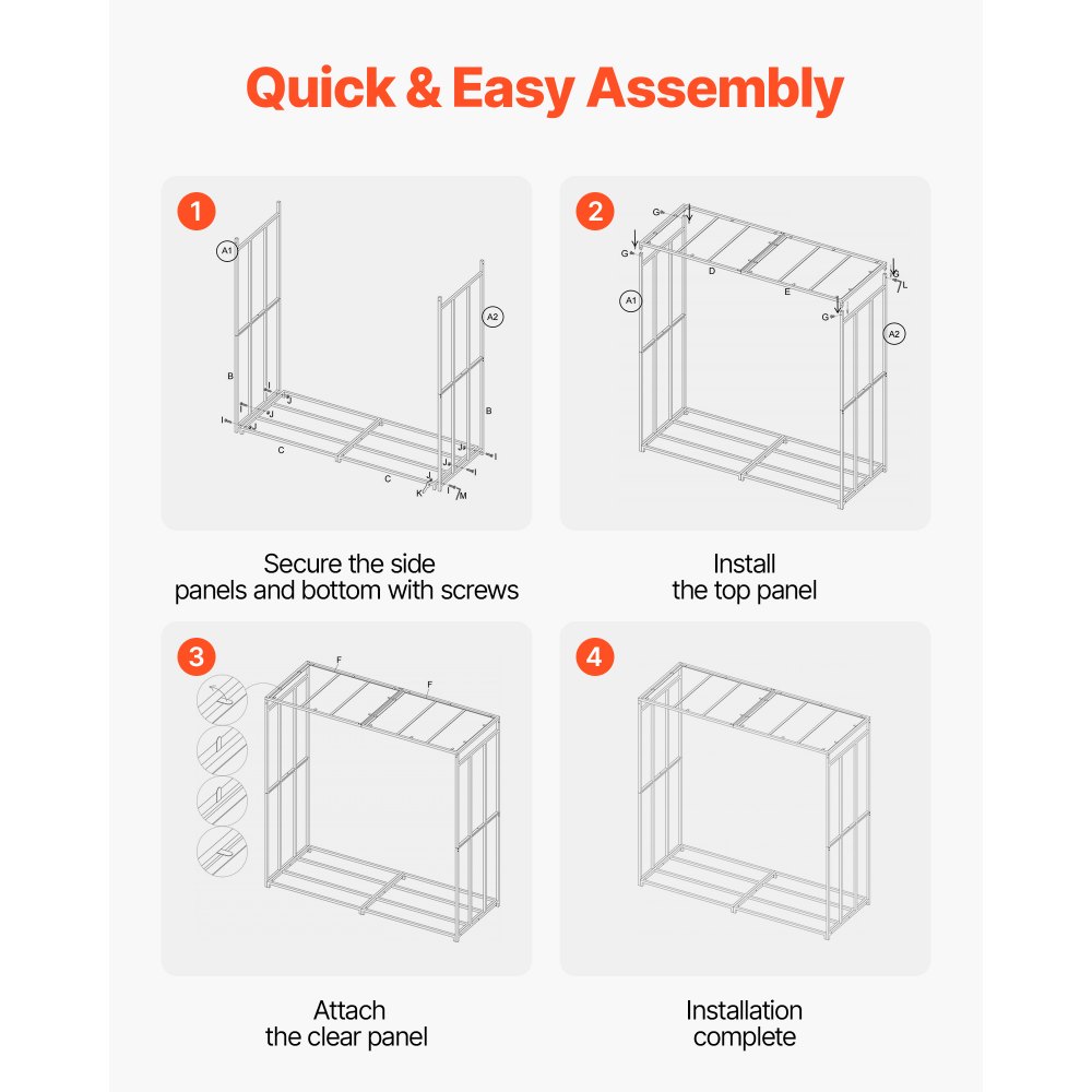 Techo de policarbonato: Este soporte de leña para exteriores cuenta con paneles de policarbonato resistentes a impactos y con protección UV. El techo ofrece una protección duradera para la leña