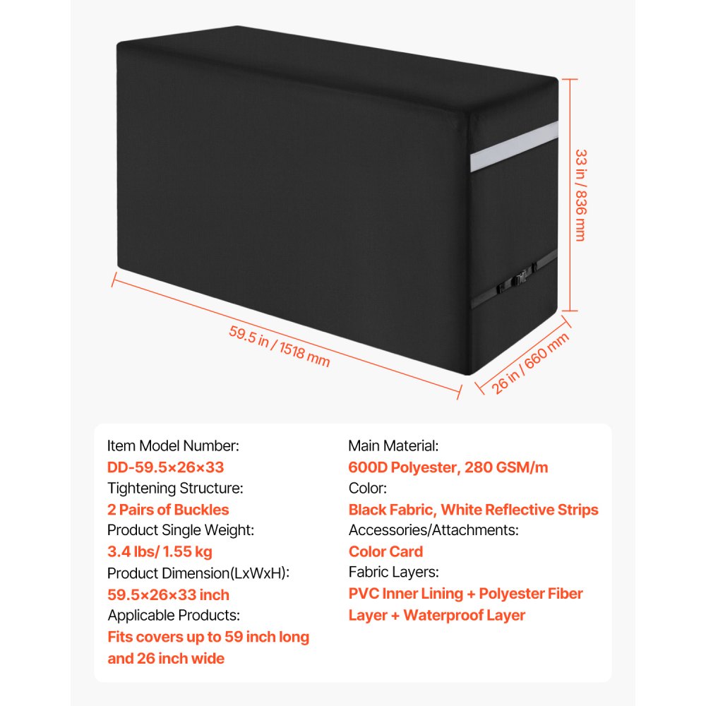Funda para Parrillas de Exterior, Impermeable y Resistente a la Intemperie, Poliéster 600D Duradero, 280 g/m², Fácil de Poner y Quitar, con Hebillas Seguras, 1518 x 660 x 836 mm, Negro