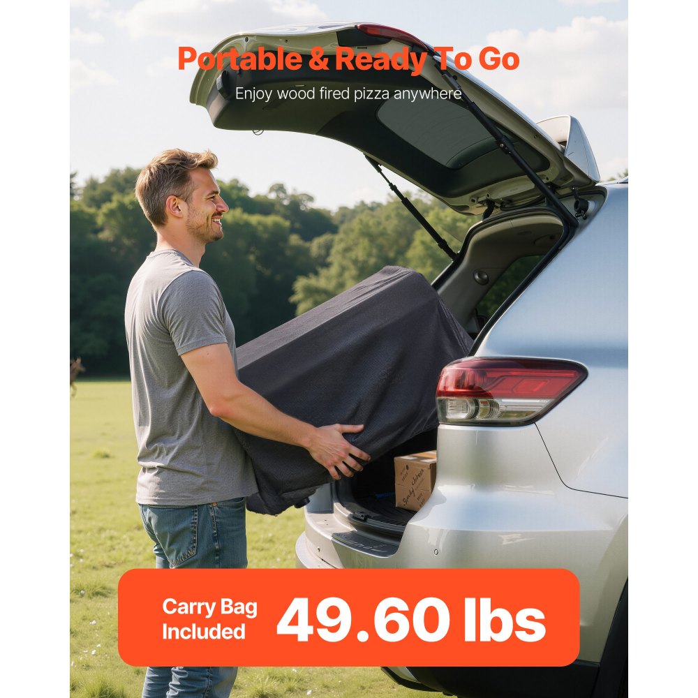 Compacto y portátil: Equipado con una bolsa de transporte, nuestro horno de pizza portátil es ligero y perfecto para exteriores. Fácil de transportar e instalar, ideal para camping, picnics y otras aventuras al aire libre