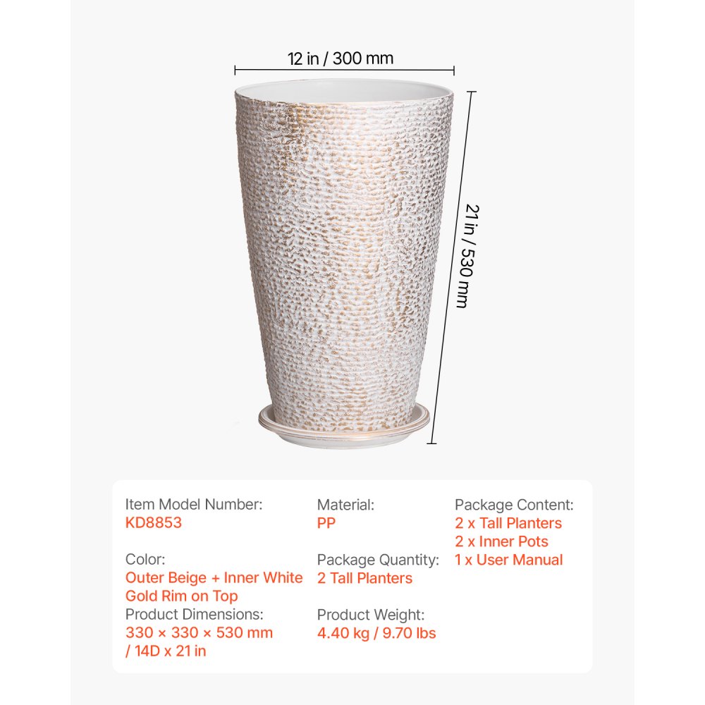Jardineras Altas de 530 mm 2 Piezas Jardineras Grandes para Plantas Jardineras Redondas Cónicas para Porche Delantero Macetas para Plantas de Árboles Diseño Moderno Drenaje Incorporado, Beige
