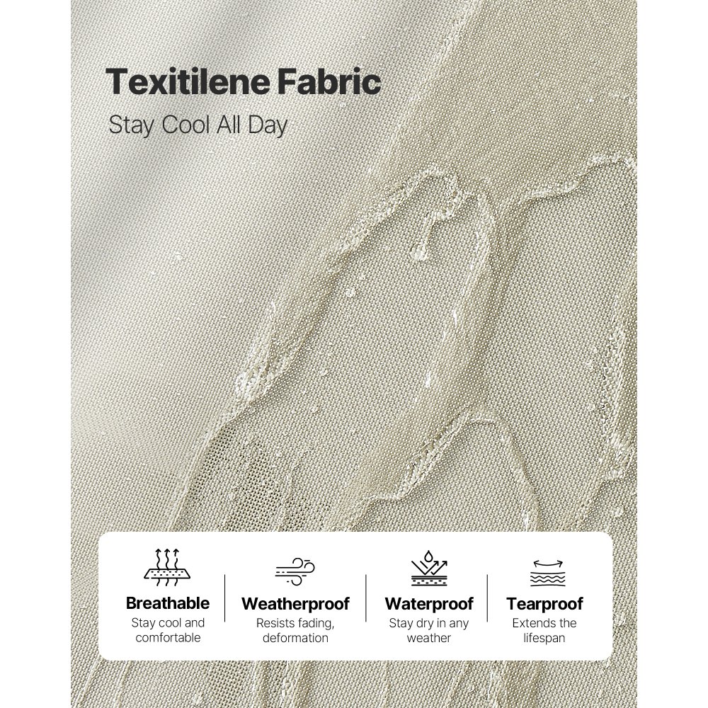Tela transpirable y cómoda: Fabricada con tela transpirable de primera calidad, esta tumbona de patio te mantiene fresco y cómodo, incluso en climas cálidos. Perfecta para largas horas de relajación en los cálidos días de verano