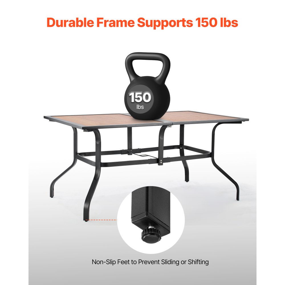 Mesa de Patio para Jardín y Balcón, 1505 x 960 x 725 mm, en Acero al Carbono y Placa DPC, para 4 a 6 Personas, Resistente al Agua, con Orificio para Sombrilla de 35 mm y Carga de 68,04 kg