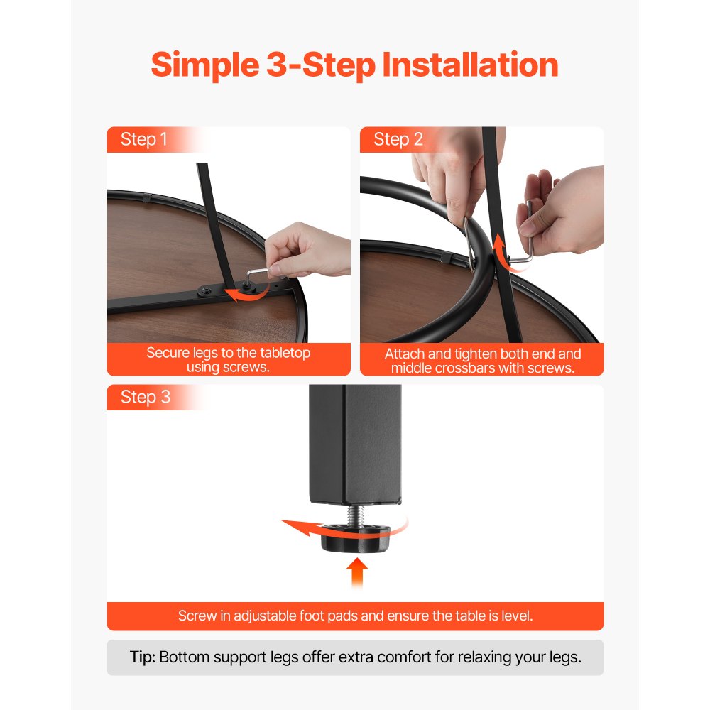 Fácil montaje: La mesa de comedor incluye instrucciones detalladas para un montaje rápido y sencillo en solo tres pasos. Incluye todos los tornillos y herrajes necesarios, lo que elimina la necesidad de piezas adicionales. También cuenta con patas niveladoras para mayor estabilidad en suelos irregulares
