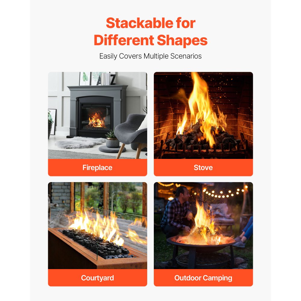 Uso versátil para múltiples escenarios: Apílelos fácilmente en diferentes formas para crear un efecto decorativo personalizado. Ideales para chimeneas, fogatas, patios y camping al aire libre, garantizando calidez y comodidad en cualquier lugar