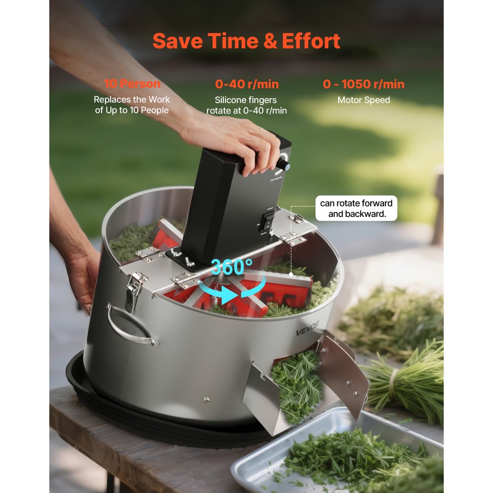 Ahorra tiempo y es eficiente: Equipada con un motor sin escobillas de alto rendimiento con control de velocidad continuo, esta recortadora de cogollos eléctrica te permite ajustar la velocidad con precisión según tus necesidades. Sus robustas cuchillas de acero garantizan cortes precisos, minimizando el daño a las plantas y mejorando la productividad y la calidad del corte