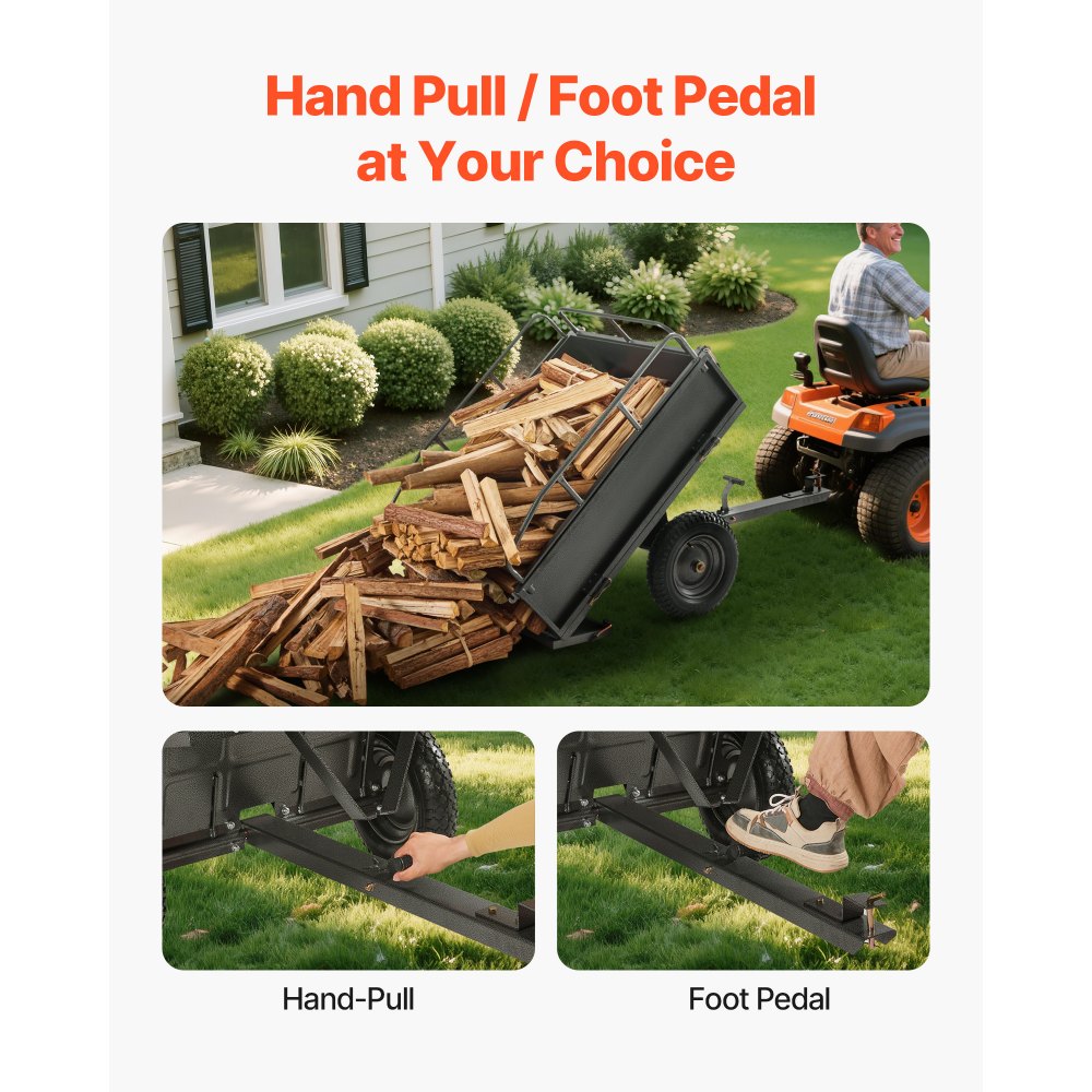 Compatibilidad universal: Con un pasador de 12 mm, este remolque de jardín es compatible con diversos equipos, como tractores, vehículos todoterreno, UTV y cortacéspedes. Se conecta fácilmente, lo que proporciona una solución de transporte ideal para mejorar la eficiencia y reducir el tiempo de operación