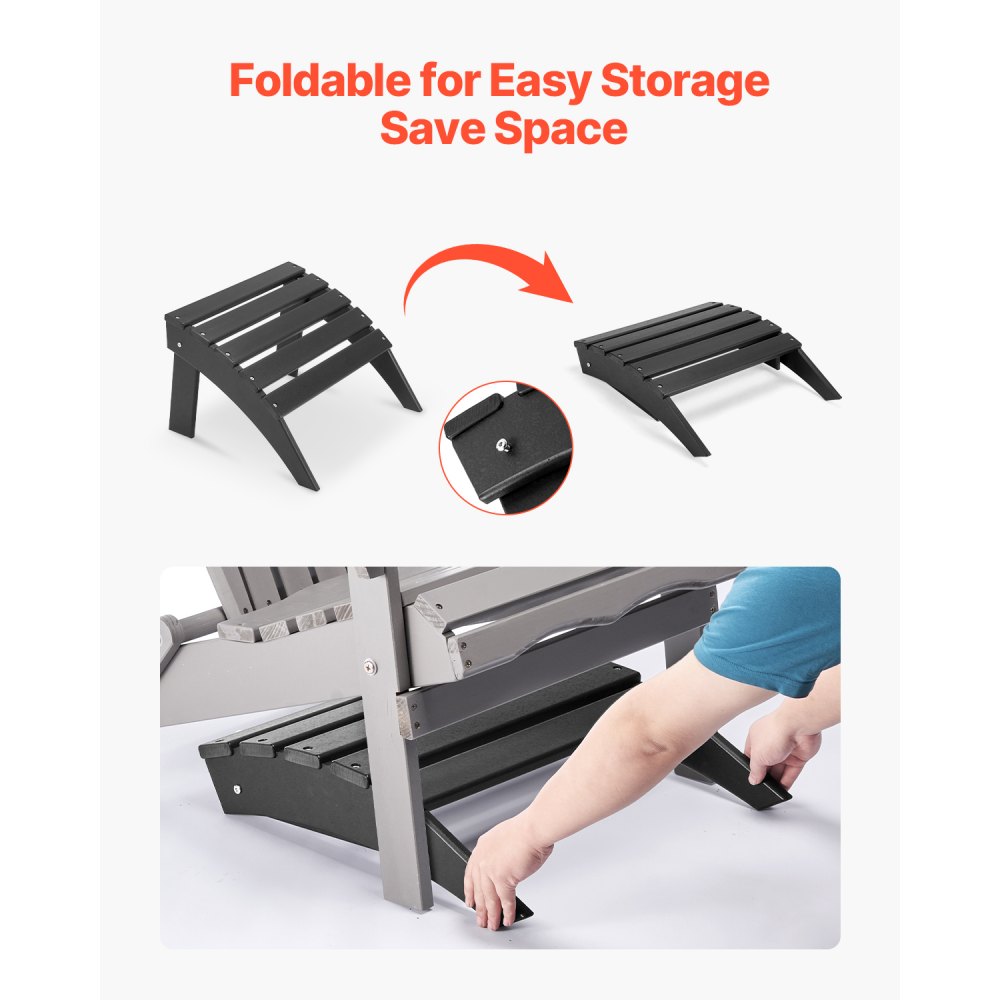 Reposapiés Adirondack Plegable de Plástico HDPE de 475 x 500 x 330 mm, Reposapiés Adirondack Resistente a la Intemperie para Silla Adirondack para Porches Exteriores, Césped, Patios, Negro