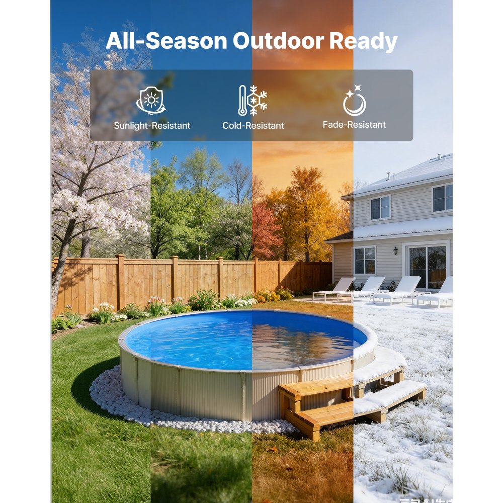 Protección para todo el año: Diseñado para resistir la exposición al sol y las bajas temperaturas, este revestimiento redondo para piscina mantiene su flexibilidad sin agrietarse ni decolorarse. Diseñado para uso en exteriores durante todo el año, ofrece resistencia duradera y tranquilidad