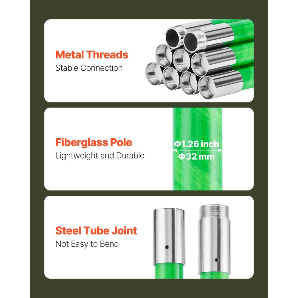 Conexión estable: Las conexiones roscadas de metal garantizan un montaje seguro. Apoye la primera sección en un árbol y luego añada secciones adicionales. La longitud recomendada para podar es de 6 metros (20 pies), aproximadamente 6 postes. Se recomienda usar soporte para la espalda para uso prolongado