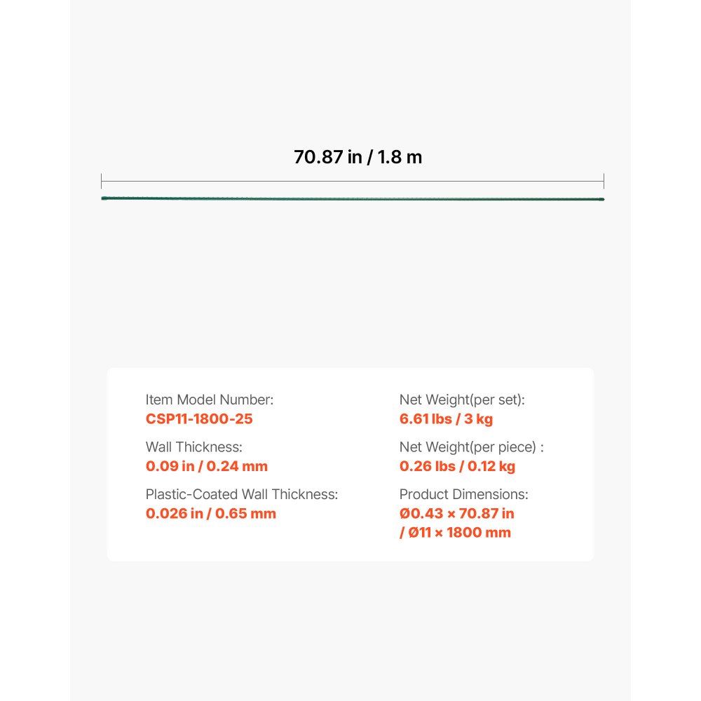 Soportes para Plantas, Ø11 x 1800 mm, Tutores de Metal Recubiertos de Plástico, con Extremo Puntiagudo y Topes Antideslizantes para Cultivo de Plantas Trepadoras y Hortalizas, 25 uds, Verde - Jardín y césped