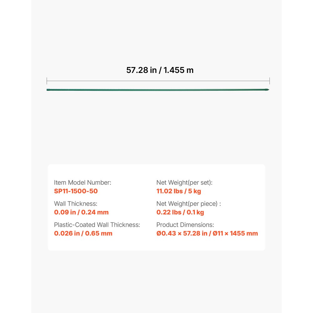 Soportes para Plantas, ⌀ 11x1455 mm, Tutores de Metal Recubiertos de Plástico, con Extremo Puntiagudo y Topes Antideslizantes para el Cultivo de Plantas Trepadoras y Hortalizas, 50 uds - Jardín y césped
