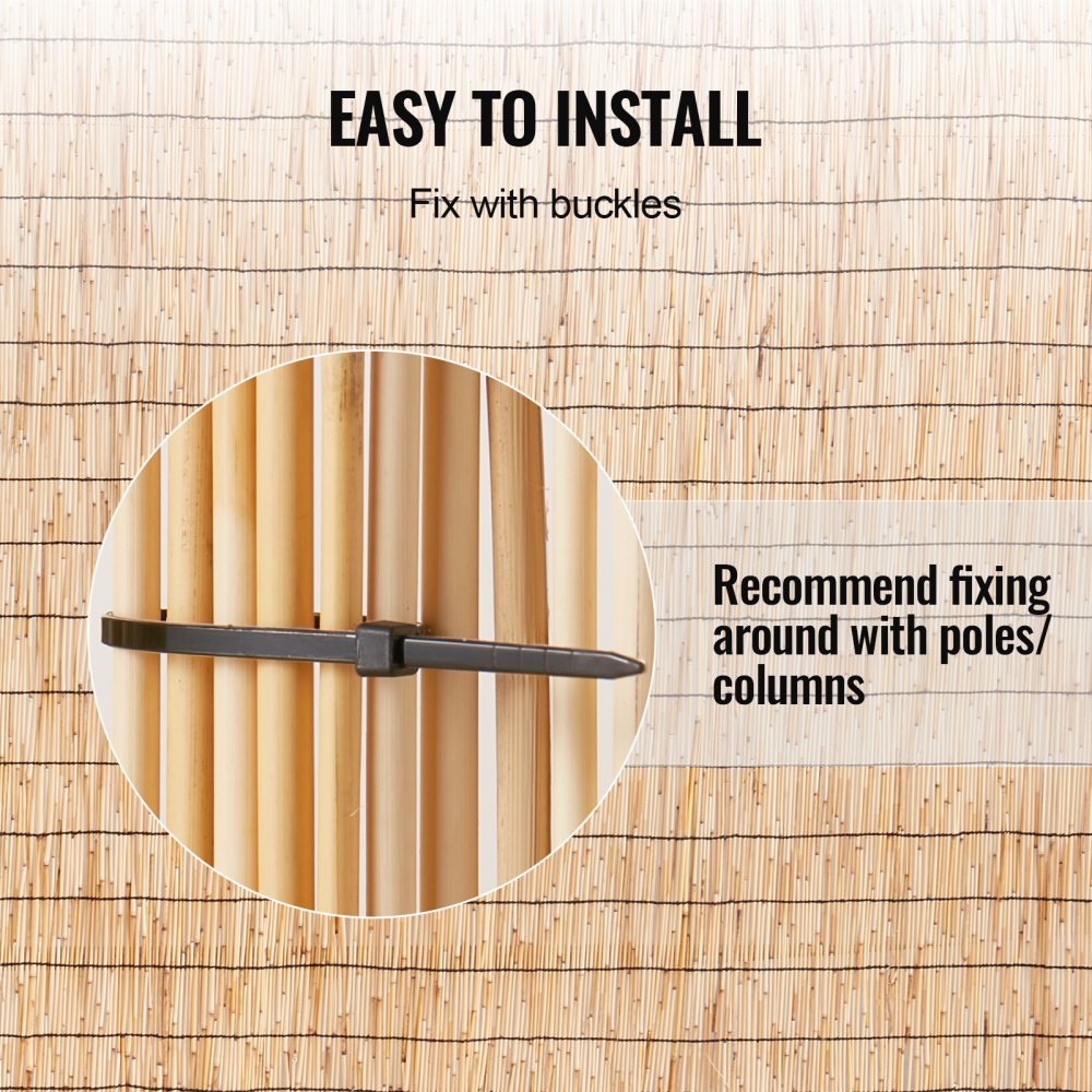 Corte flexible: Nuestras cañas naturales flexibles se pueden cortar para que la cerca de privacidad de caña sea más adecuada para su hogar y más adaptable para la decoración. Solo aplique un poco de pegamento fuerte en el área cortada, déjela secar y córtela según sea necesario. ¡Fácil y flexible!