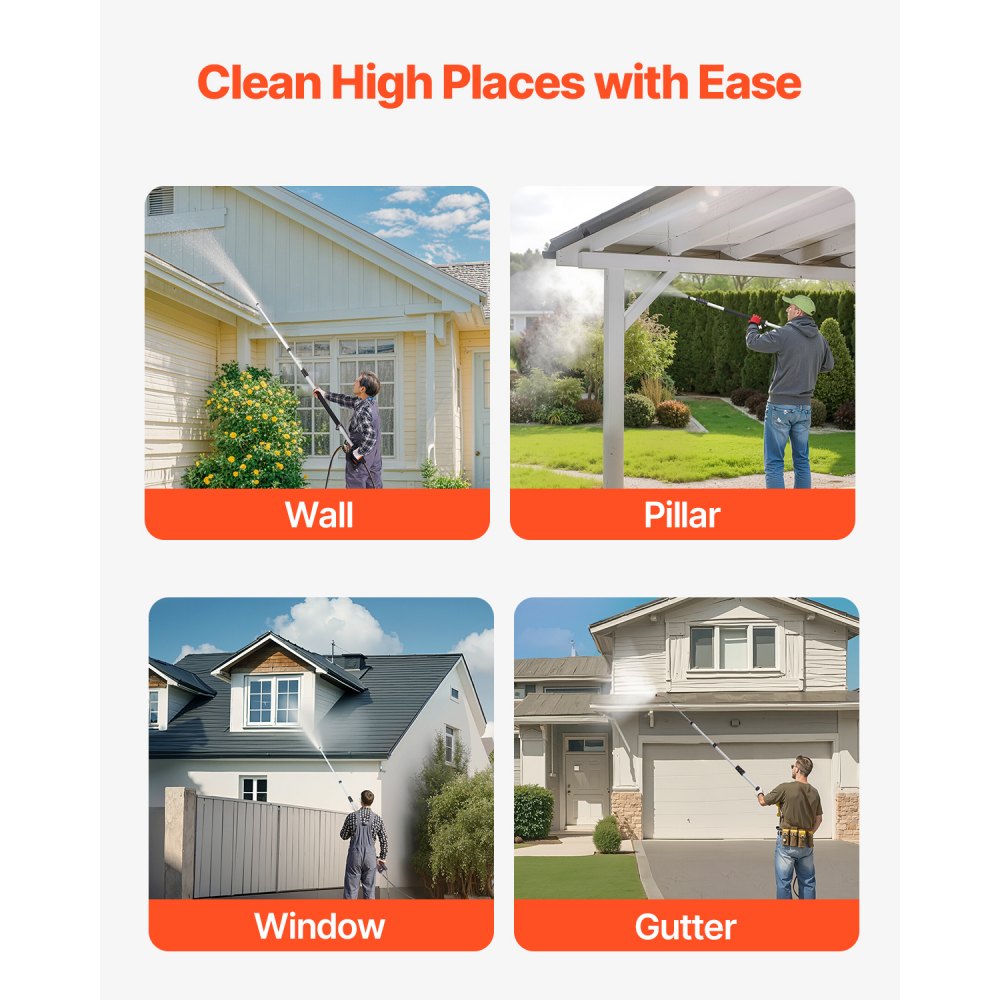 Herramienta profesional: Nuestra varilla telescópica para hidrolavadora limpia sin esfuerzo la suciedad desde alturas que van desde 5 a 18 pies. Equipada con 4 bloqueos de ajuste telescópico, puede configurar la varilla a la longitud deseada para limpiar fácilmente canaletas altas, paredes, pilares, ventanas y más