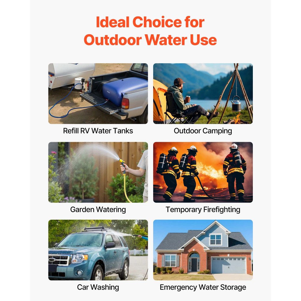 Portátil y fácil de guardar: La bolsa de agua portátil incluye cuatro asas de transporte reforzadas que permiten colocarla de forma segura en la caja de una camioneta, SUV o en el techo para un transporte seguro. Su material flexible de PVC se pliega para un almacenamiento compacto cuando no se usa, eliminando la necesidad de voluminosos tanques de agua