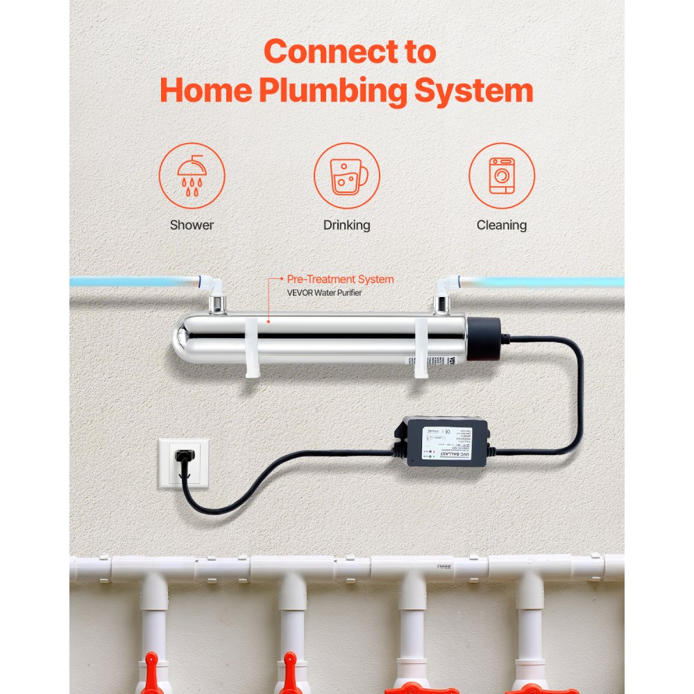 12 W Purificador de Agua Ultravioleta, 1 GPM, Filtro Purificador de Agua Ultravioleta Versátil para Toda la Casa con Carcasa de Acero Inoxidable, Funda de Cuarzo Apto para Ducha, Bebida - Laboratorio