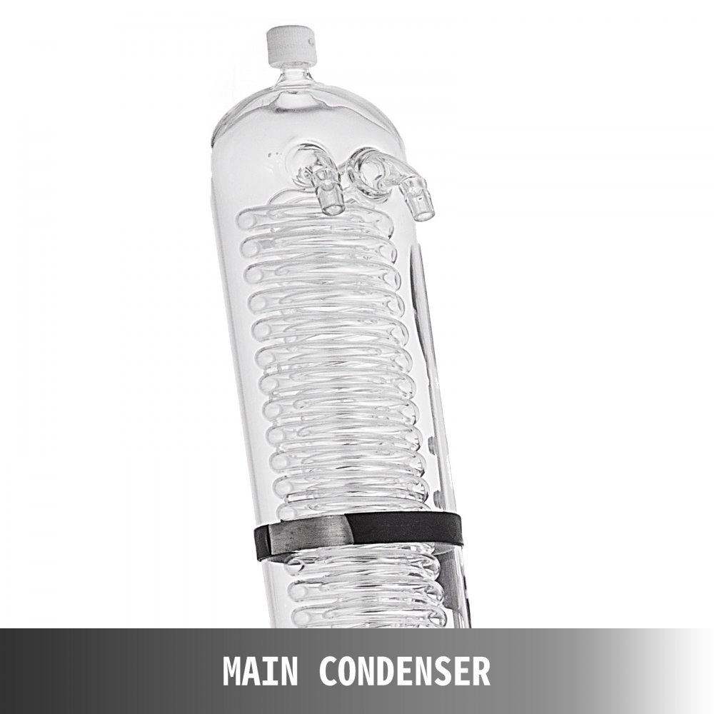 【CONDENSADOR EFICIENTE】- El producto utiliza un tubo condensador serpentino, que no solo tiene un área de condensación grande sino que también tiene una alta eficiencia de destilación. Es adecuado para líquidos con tarifas más bajas.