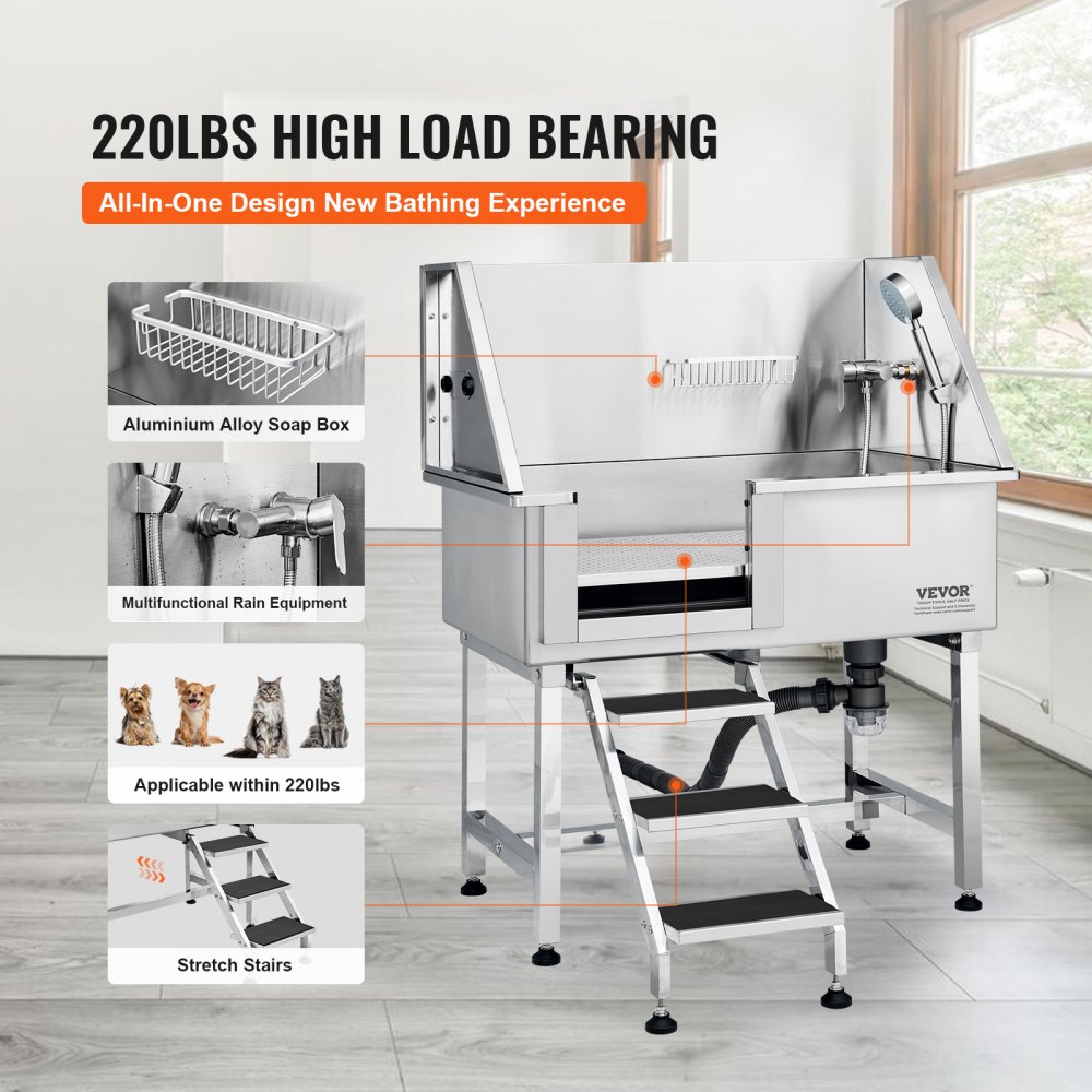Soldadura sin costuras de 965,2 mm: Diseño integrado multifuncional, soldadura sin costuras sin problemas de fugas de agua. Seguro y antideslizante, con capacidad de carga de 100 kg. Hace que el cuidado de las mascotas sea más fácil y seguro. La elección ideal para peluqueros profesionales y amantes de las mascotas.