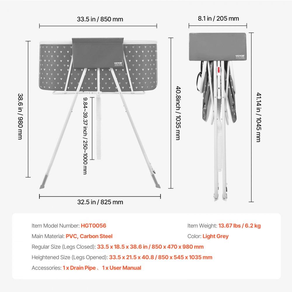 Bañera Portátil para Perros, Elevada y Plegable, que Ahorra Espacio con Drenaje Eficiente, para Lavar y Asear Perros y Gatos Pequeños y Medianos Interiores y Exteriores, Gris, 850 x 470 x 980 mm