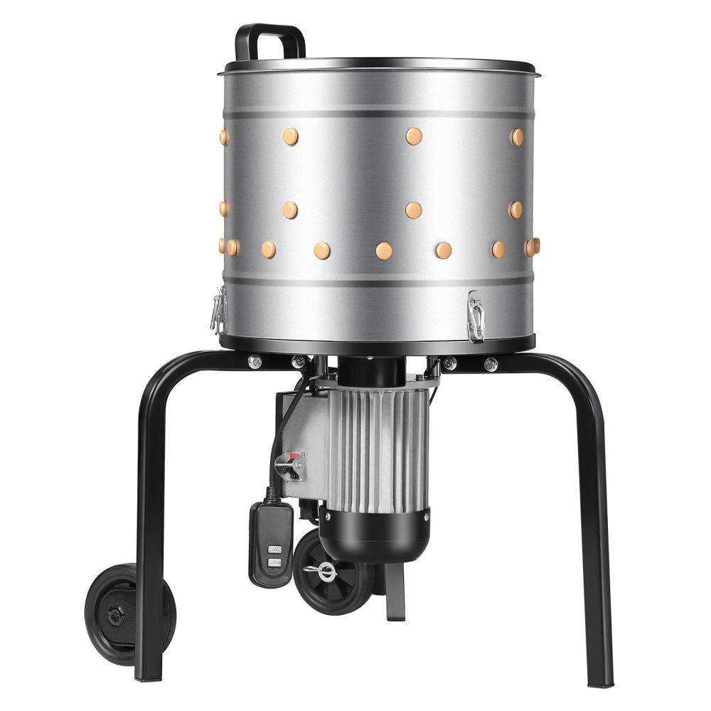 Desplumadora Eléctrica de Aves, Tambor de 400 mm, 500 W, 230 RPM, 114 Dedos Suaves y Ruedas de Transporte, Removedor de Plumas de Acero Inoxidable a Procesar 1-2 Pollos, 595 x 556 x 800 mm - Mascotas