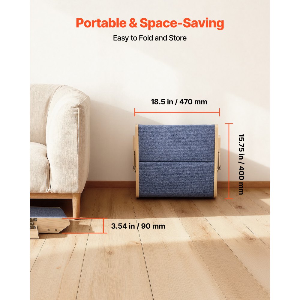 Fácil de transportar y guardar: Las escaleras para mascotas se pliegan para un almacenamiento compacto y un transporte sin esfuerzo. Colóquelas fácilmente en el coche, armario o rincón de la casa sin ocupar espacio