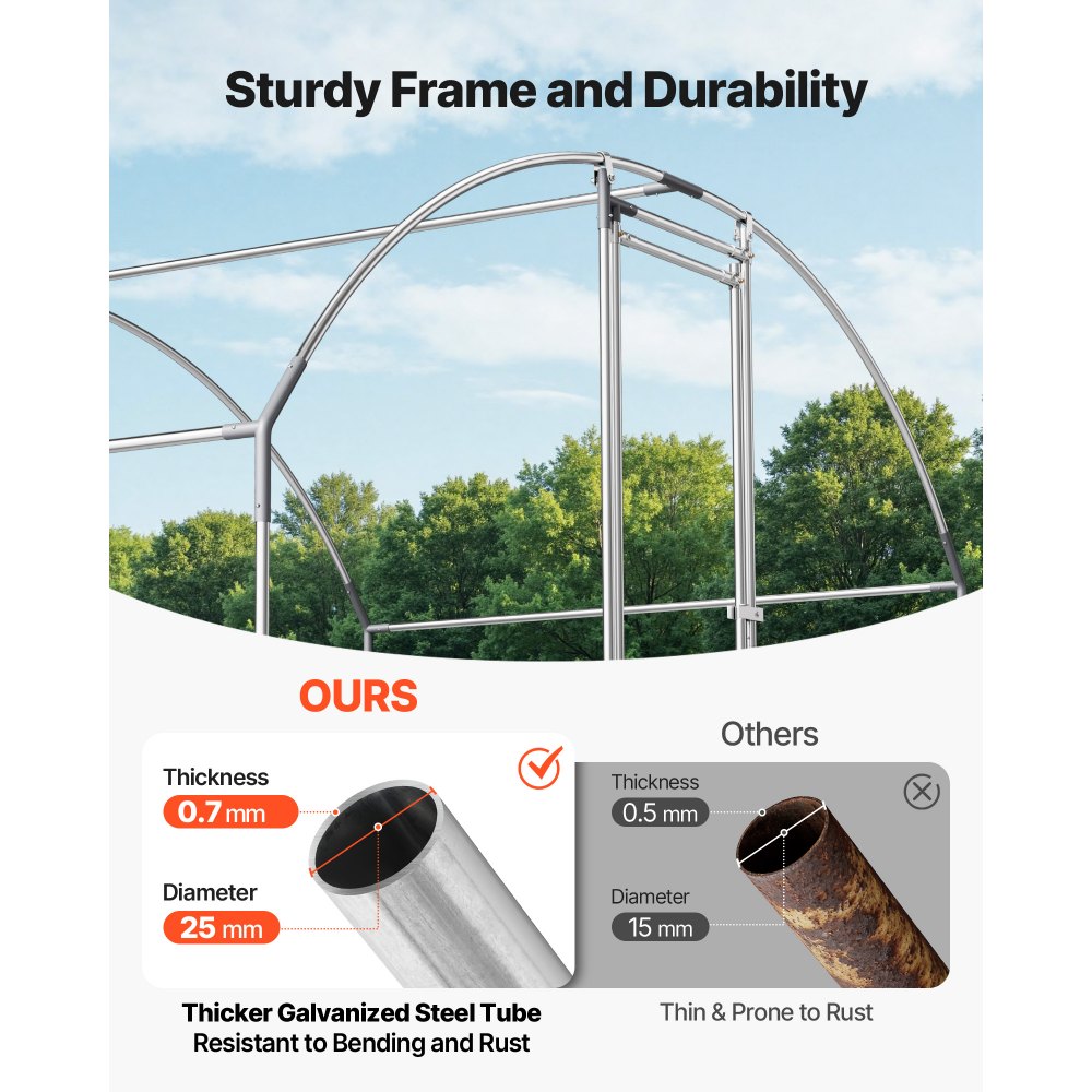 Resistente a la intemperie y a la corrosión: Fabricado con tubos de acero galvanizado y rigurosamente probado contra la niebla salina, este gran gallinero soporta condiciones climáticas adversas como la lluvia, el viento y la exposición al sol, lo que garantiza estabilidad y seguridad a largo plazo