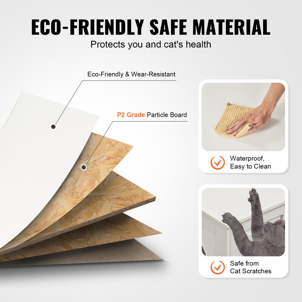 Carga robusta: La carga superior puede alcanzar los 68 kg, con una estructura firme y estable, colocando de forma segura jarrones, libros u otras decoraciones. El arenero para gatos también se puede utilizar como casita para gatos, mesa de té, mesa de café o mueble de televisión. La parte inferior agrega pies de apoyo para mejorar la estabilidad y una capacidad de carga de hasta 45 kg, que se pueden colocar sobre cajas de arena para gatos u otros objetos pesados.