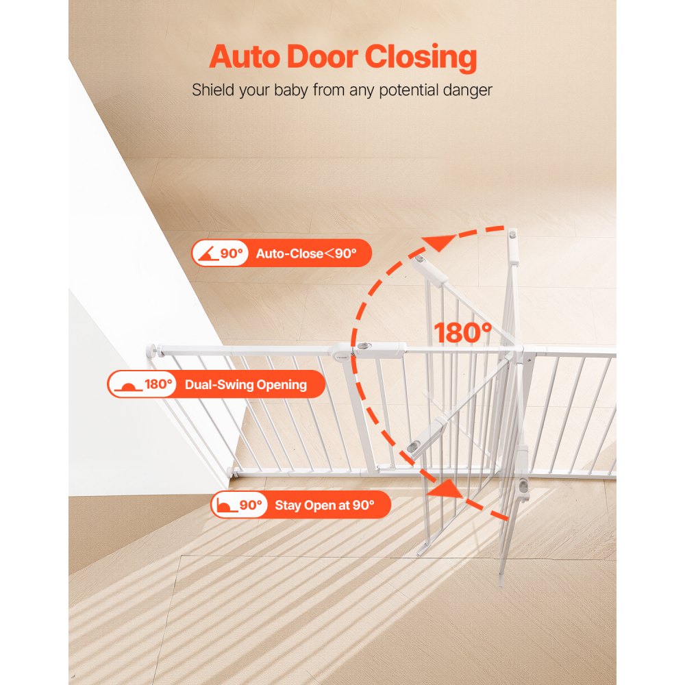 Función de cierre automático: Si se abre la puerta y el ángulo es inferior a 90°, se cerrará automáticamente, lo que reduce el riesgo de accidentes por olvidar la puerta y ayuda a evitar posibles peligros para su bebé cuando no está supervisado