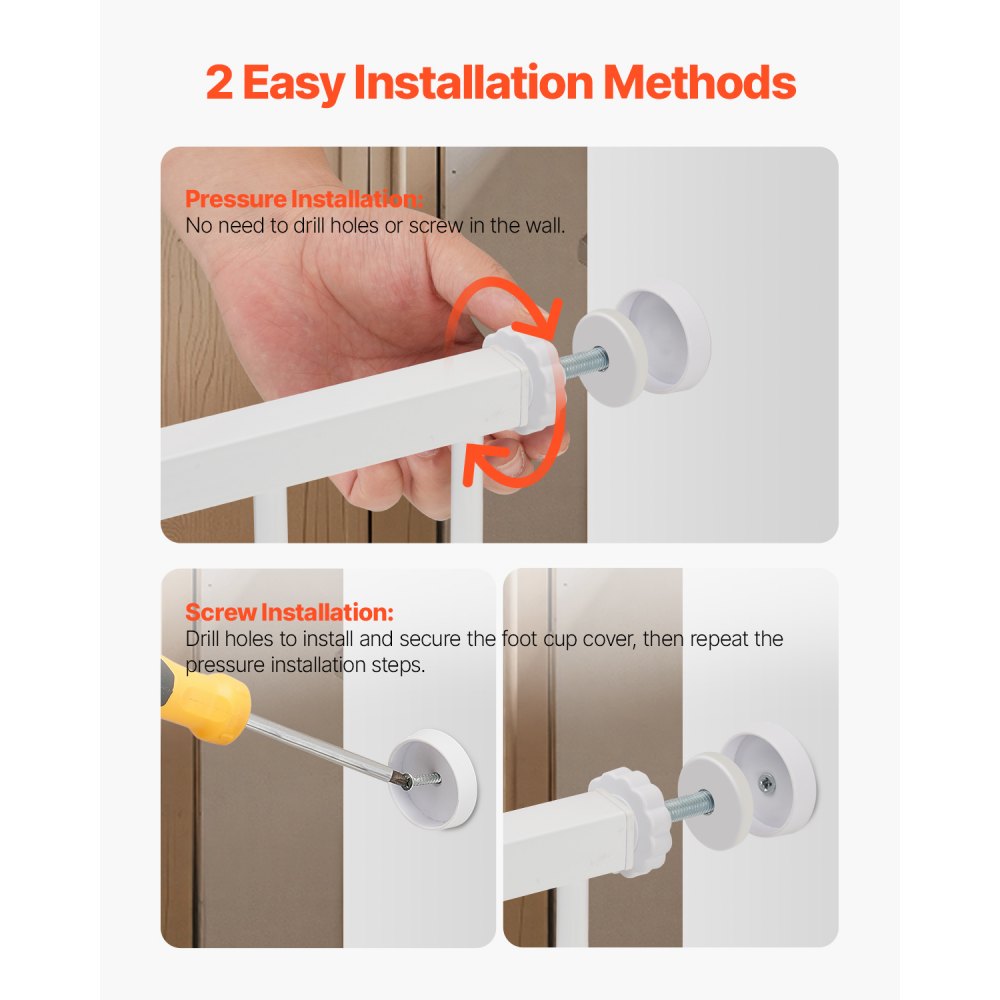 Operación de la puerta con una mano: El diseño único de doble bloqueo de la puerta para mascotas no solo garantiza la seguridad, sino que también permite la operación con una mano. Puede abrir y cerrar fácilmente la puerta con una mano mientras sostiene a su bebé, lo que lo hace conveniente y sin estrés cuando cuida a su hijo