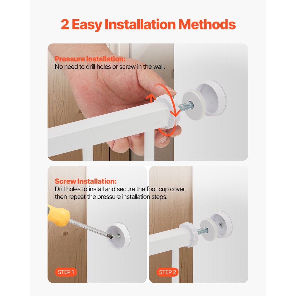 Puerta para bebés alta: Con una altura de 91,4 cm, no tendrá que preocuparse de que las mascotas salten la puerta para bebés. También cuenta con un ancho ajustable de 65 a 101,6 cm, que se adapta a varias aberturas de su hogar. Es ampliamente aplicable a escaleras, cocinas, pasillos, dormitorios y más