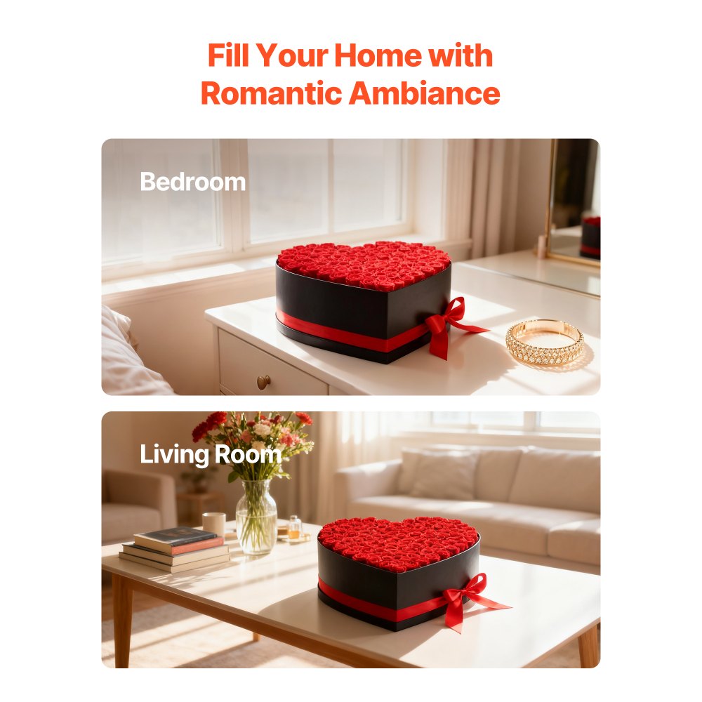 Decoración versátil hecha de rosas preservadas: Con su textura natural y diseño equilibrado, estas flores eternas encajan en salas de estar, dormitorios, bodas o eventos, integrándose fácilmente en el diseño interior y mejorando la atmósfera de sus habitaciones y eventos