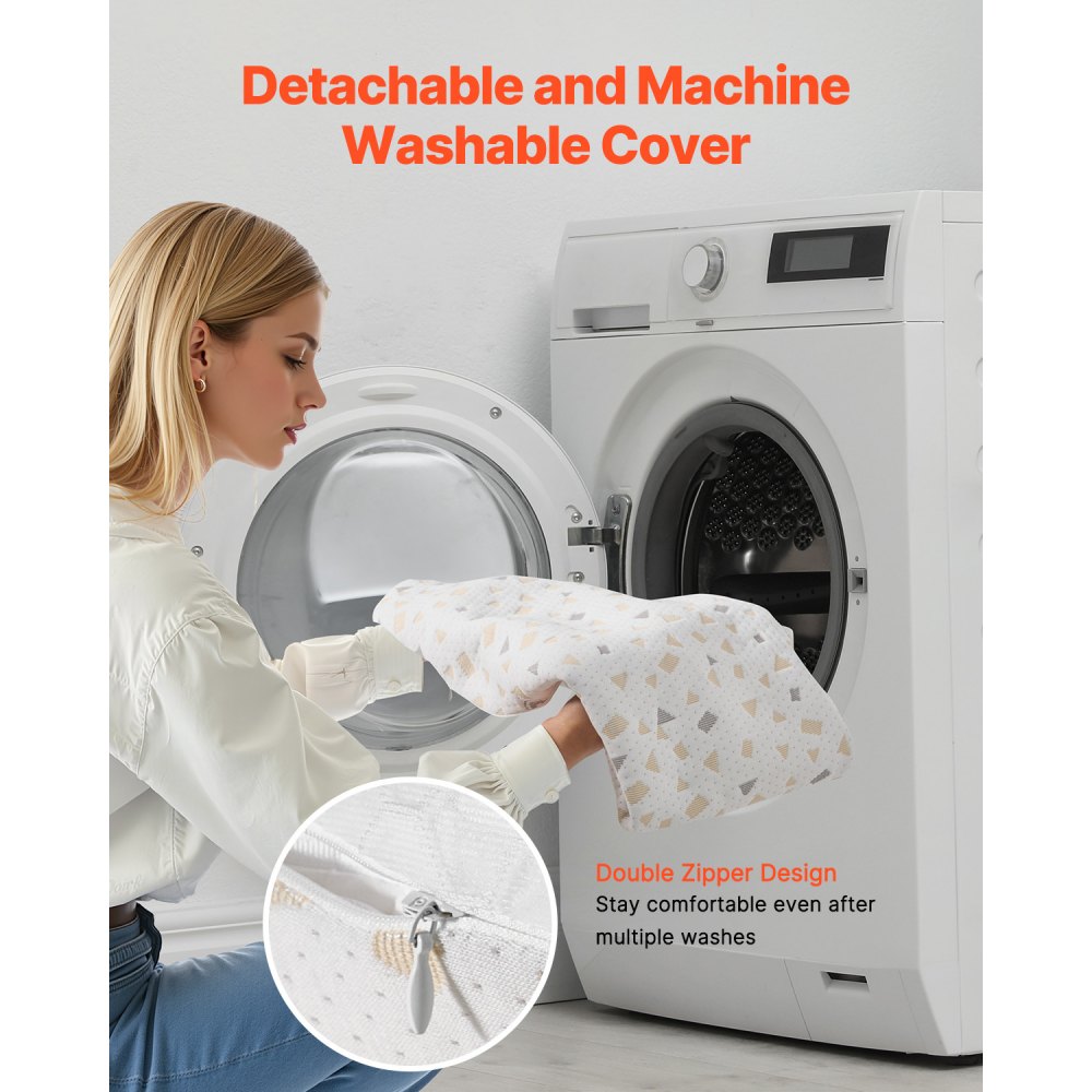 Fácil de limpiar: La funda extraíble y lavable a máquina garantiza una limpieza sin esfuerzo, manteniendo tu almohada corporal para embarazadas como nueva. Y el diseño de doble cremallera permite una extracción fácil, lo que ofrece comodidad y durabilidad incluso después de varios lavados