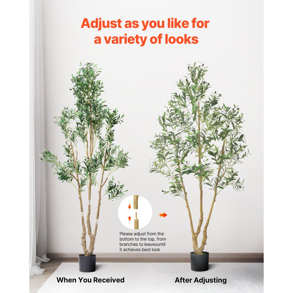 Árbol Artificial de Olivo Alto de 2134 mm Planta Artificial de PE para Decoración Árbol Verde Planta Falsa para Hogar, Oficina, Hotel, Centro Comercial, Interior y Exterior, Maceta Negra