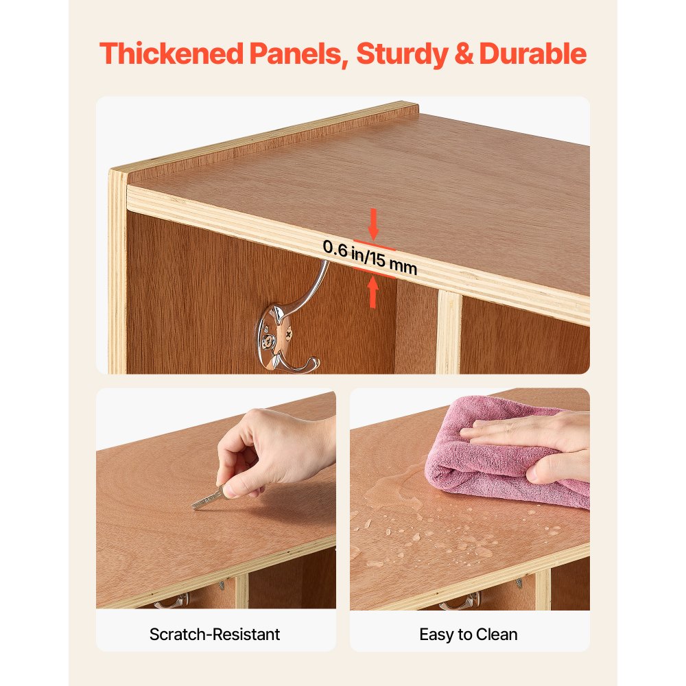 Duradero y seguro: Construido con tablas gruesas y resistentes y bordes pulidos, nuestro casillero de madera para niños es suave, sin esquinas afiladas ni astillas y sin olor, con una base reforzada para evitar que se tambalee para un uso seguro en las áreas de los niños