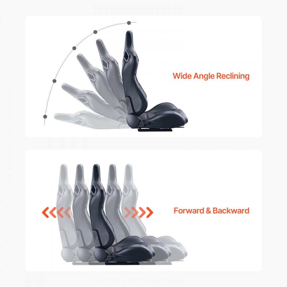 Ajustable: Experimente la flexibilidad con nuestros asientos de carreras. El respaldo ajustable(90°-180°) le permite encontrar su posición ideal, desde sentado erguido hasta reclinado o inclinado hacia atrás. El asiento también se desliza hacia adelante y hacia atrás, lo que garantiza que cada conductor pueda encontrar la posición ideal para sentarse y obtener la máxima comodidad