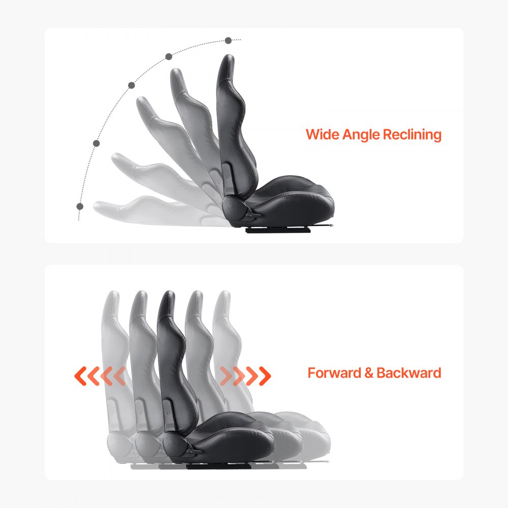 Asiento de Carreras, Juego de 2, con Ángulo Amplio Reclinable y Espuma de Alta Resiliencia, con Cuero de PVC Suave y Deslizador Q235B, Apto para Autos de Crreras y Karts, 550 x 585 x 885 mm